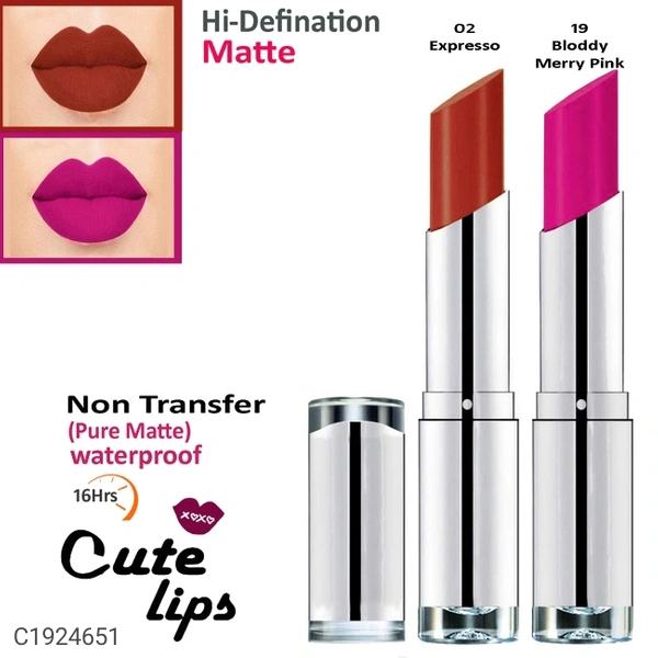 Product Name: bq BLAQUE B.Berry Cute Lips Non Transfer Matte Lipstick 2.4 gm each - 02 Expresso 19 Bloody Merry Pink