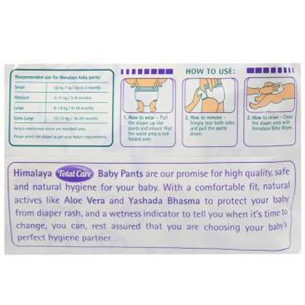 Comfort, protection, and total care of baby's skin. Made in an easy-to-wear pant-style design that offers a soft and comfortable fit and are easy to pull on and off. Himalaya Total Care Baby Pants offer a protective anti-rash shield that helps prevent diaper rash.
