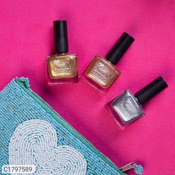 Add an extra dose of glam to your otherwise casual beauty look or create a statement look with shimmery nails for a special occasion with this trio of breathable, metallic nail colors from Iba!