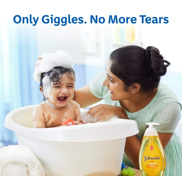 Use Johnson's baby shampoo during bath time to gently clean your baby's hair and scalp.