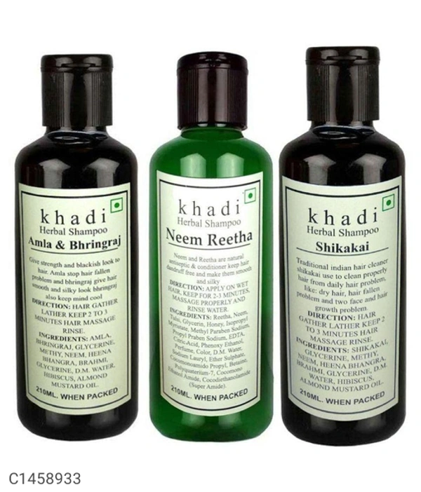 Package Contain : Khadi Amla Bhringraj, Neem Reetha, & Shikakai Shampoo 630 ml Pack of 3