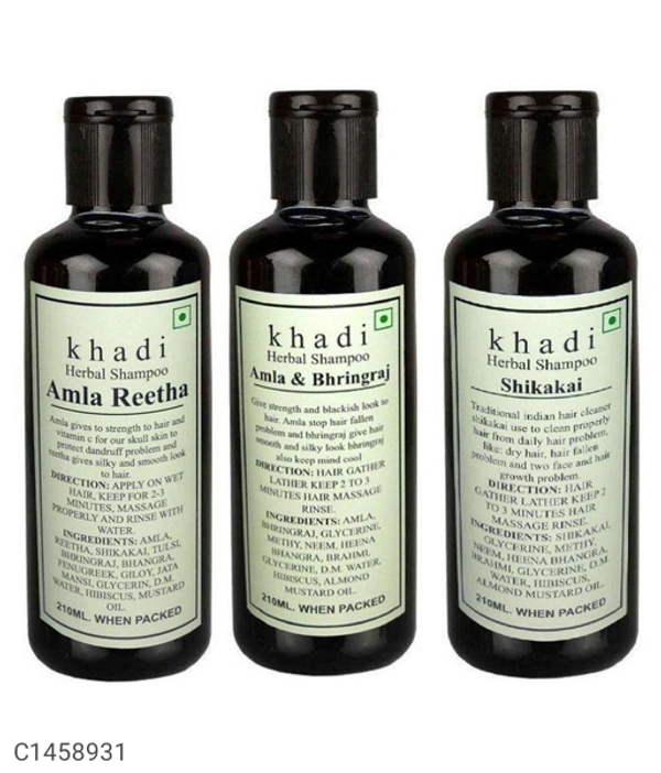Package Contain : Khadi Amla Reetha, Amla Bhringraj & Shikakai Shampoo 630 ml Pack of 3