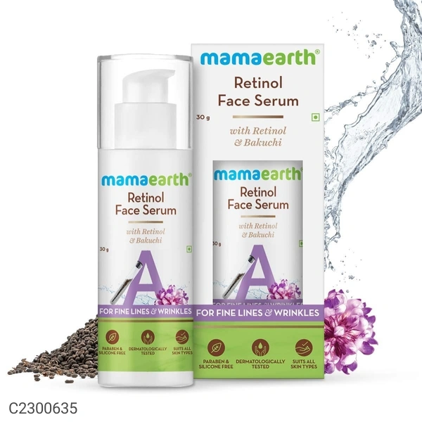 Keep them guessing your age as you reverse the hands of time! Powered with super-effective retinol and the natural goodness of bakuchi, Mamaearth Retinol Face Serum restores the skin's bounce, smoothes fine lines and wrinkles, and reduces dark spots to give you skin that's ageless.