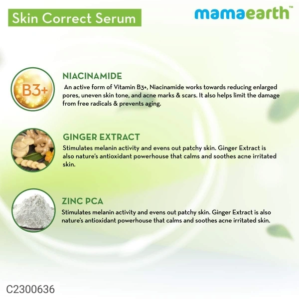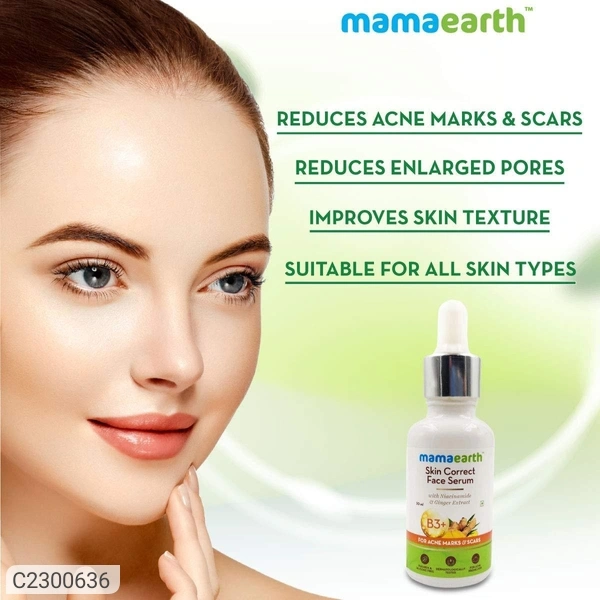 Package Contains: Mamaearth Skin Correct Face Serum with Niacinamide and Ginger Extract for Acne Marks & Scars - 30 ml