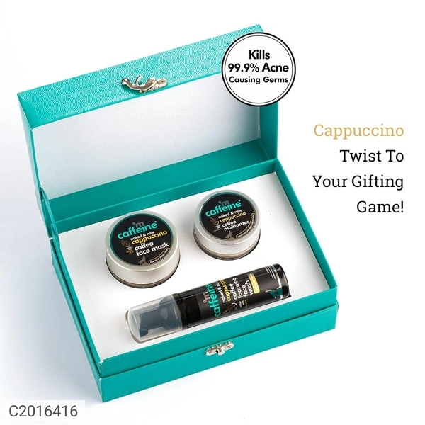 Package Contains: 1 Cappuccino Coffee Foaming Face Wash, 1 Cappuccino Coffee Face Mask, 1 Cappuccino Coffee Face Moisturizer