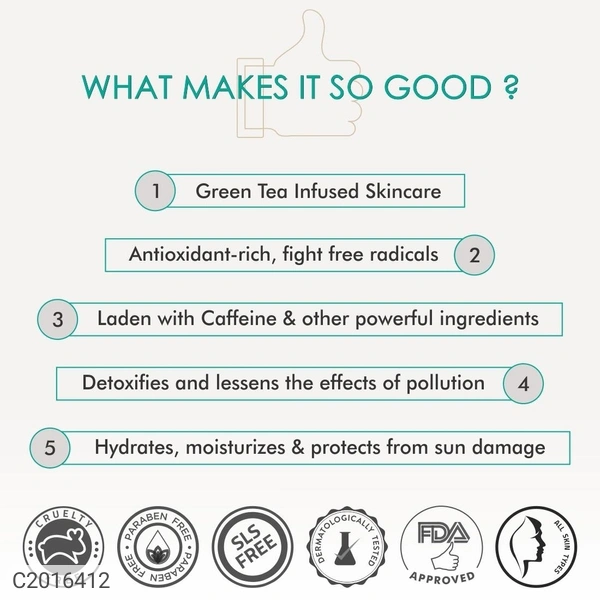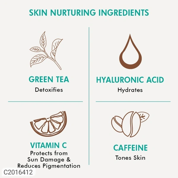 Composition: Green Tea, Hyaluronic acid, Vitamin C, Caffeine