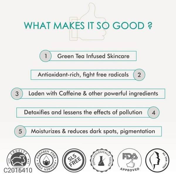 Package Contains: 1 Green Tea Face Wash, 1 Green Tea Night Gel