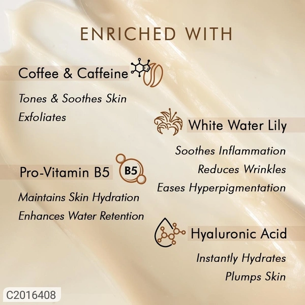 Composition: Coffee & Caffeine, White Water Lily, Pro-Vitamin B5, Hyaluronic Acid