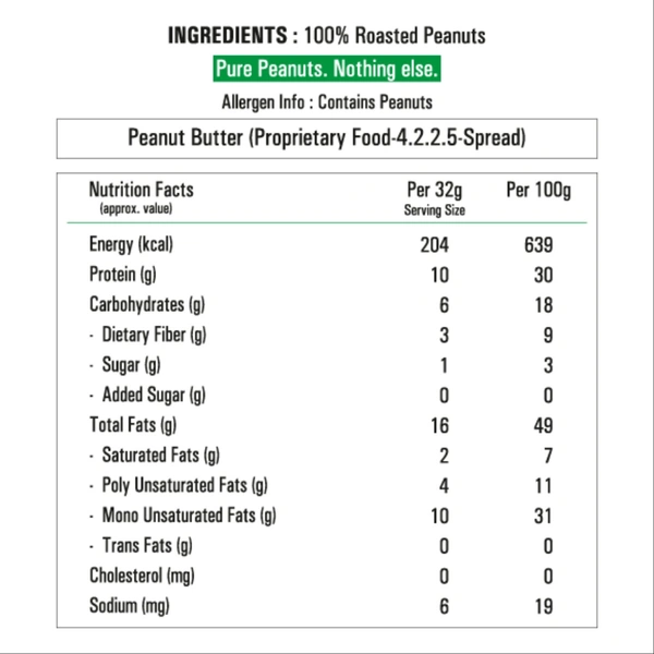 Package Contains: It has MYFITNESS PEANUT BUTTER NATURAL SMOOTH 1250g