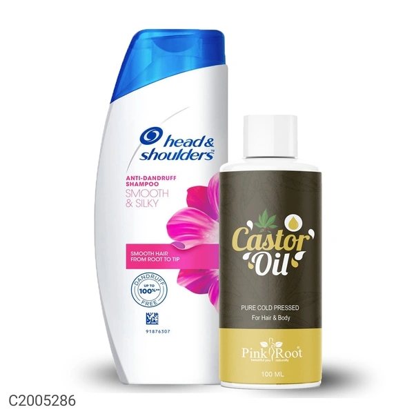Product Name: Pink Root Castor Oil 100ml With Head & Shoulders Anti Dandruff Shampoo Smooth & Silky 180ml