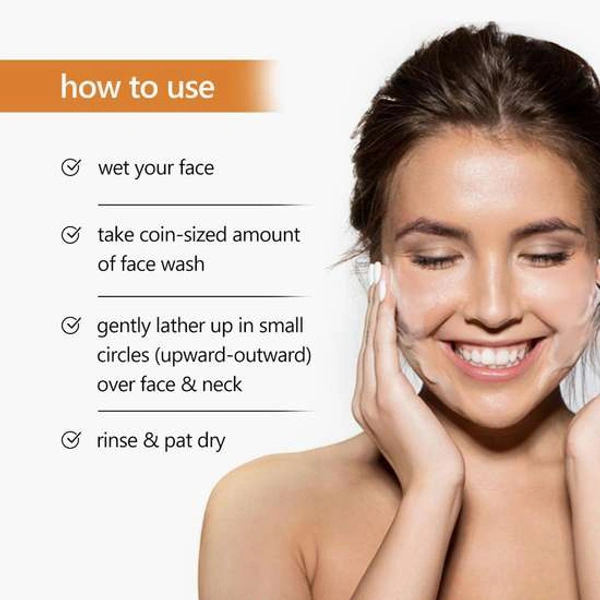 Wash hands. Splash water on face. Take coin-sized amount of face wash. Gently lather up in small circles (upward-outward) over face. Don't forget your neck. Be gentle around eyes. Rinse, pat dry and follow up with toner.