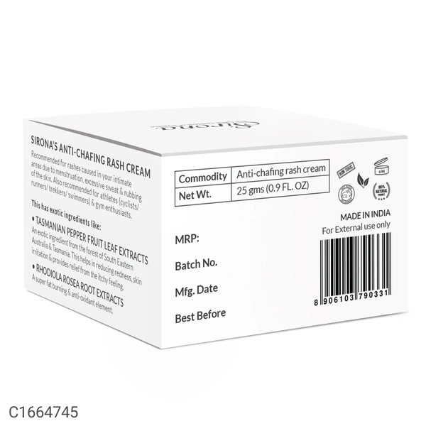 "Sirona Anti-Chafing Rash CreamRecommended for rashes caused in your intimate