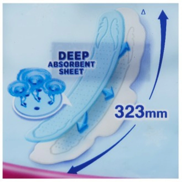 - Has a deep absorbent sheet that soaks flow till the last sheet and keeps the top sheet cleaner so you feel comfortable.